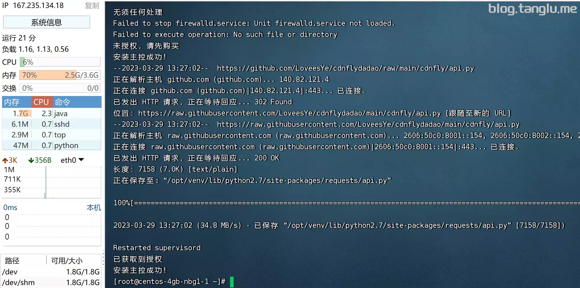 系统:cdnfly主控和被控节点暂时仅支持Centos-7和Ubuntu 16.04系统
