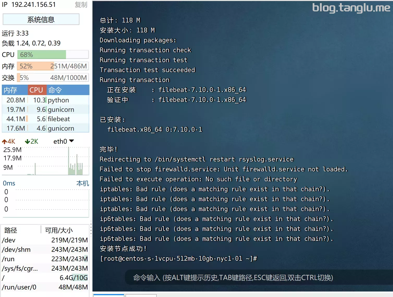 192.241.156.51做节点2 接管中国大陆移动以及海外等其他流量一台centos7系统的DO新加坡 512MB内存vps