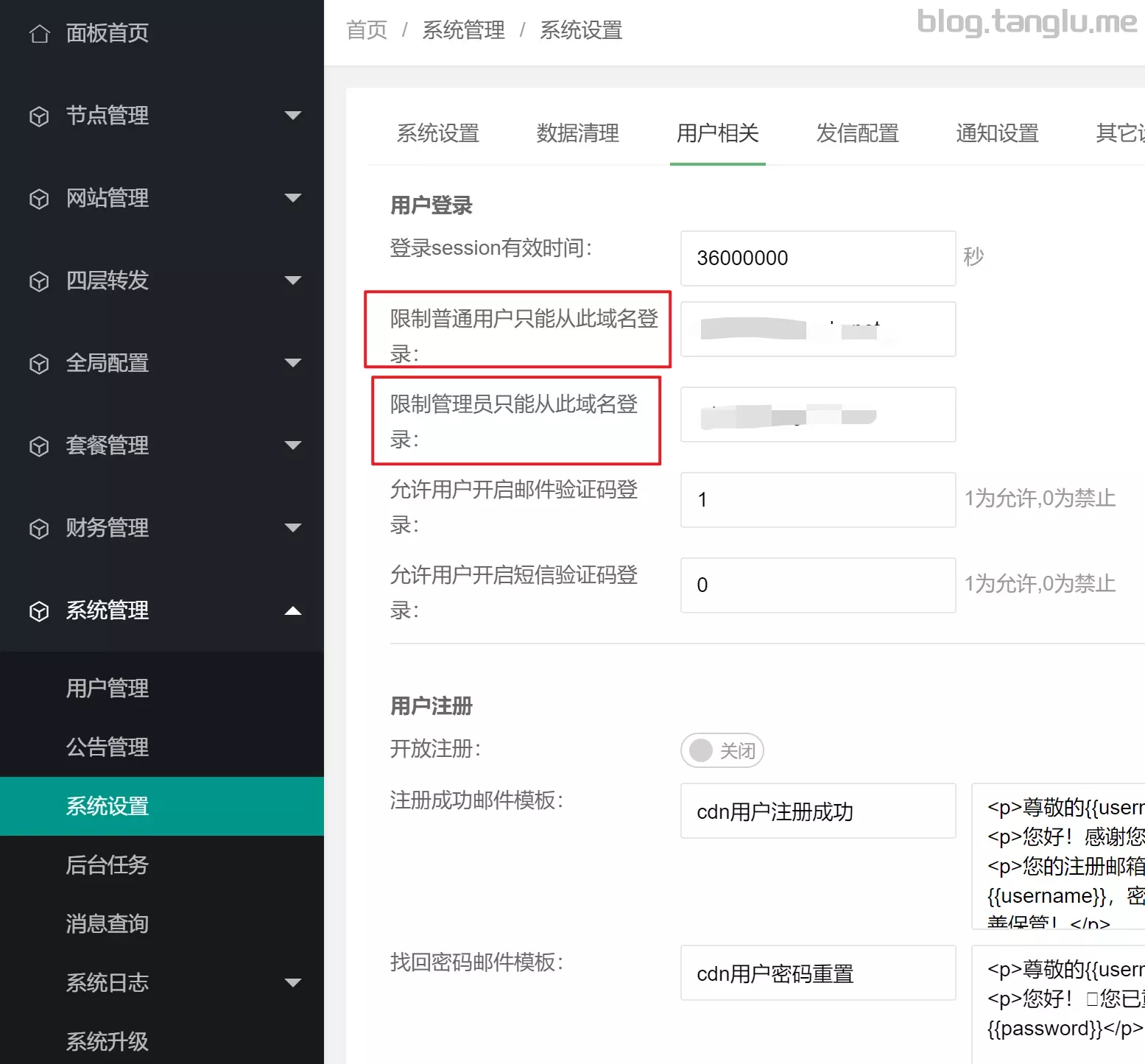 #至此主控设置完成,通过旧主控的账号密码进入可以发现 节点 用户 网站 日志 dns等都恢复了