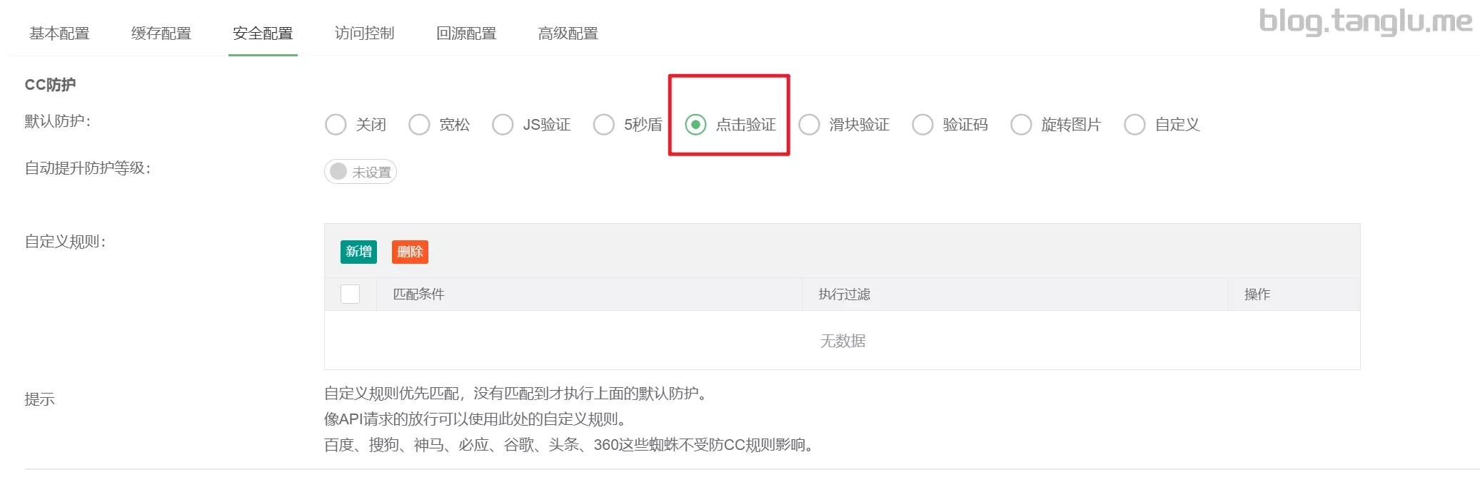 一些发卡站避免被机器人检查可以设置访问该域名需要点击验证
