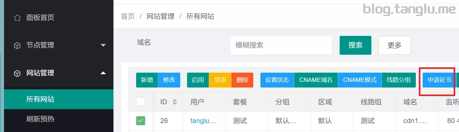 一种是在 网站管理 > 证书管理 > 我的证书 中申请证书