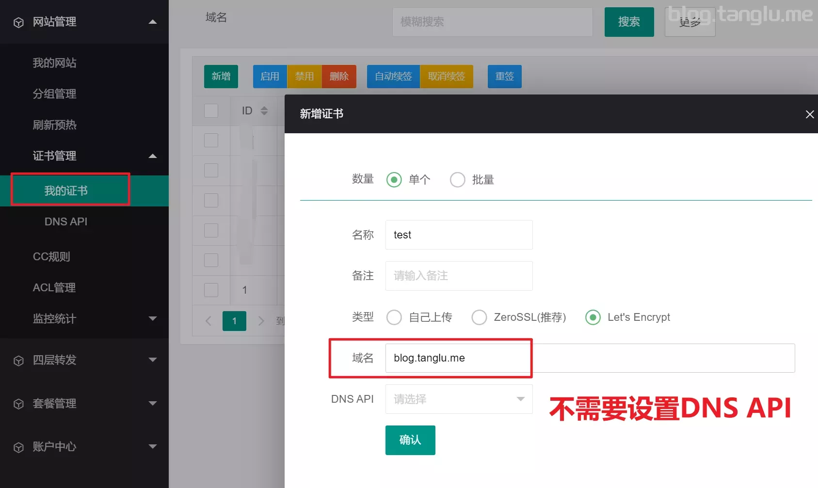 如果没有申请成功,可以在 我的网站 > 高级配置 中开启 /.well-known/acme-challenge/请求回源