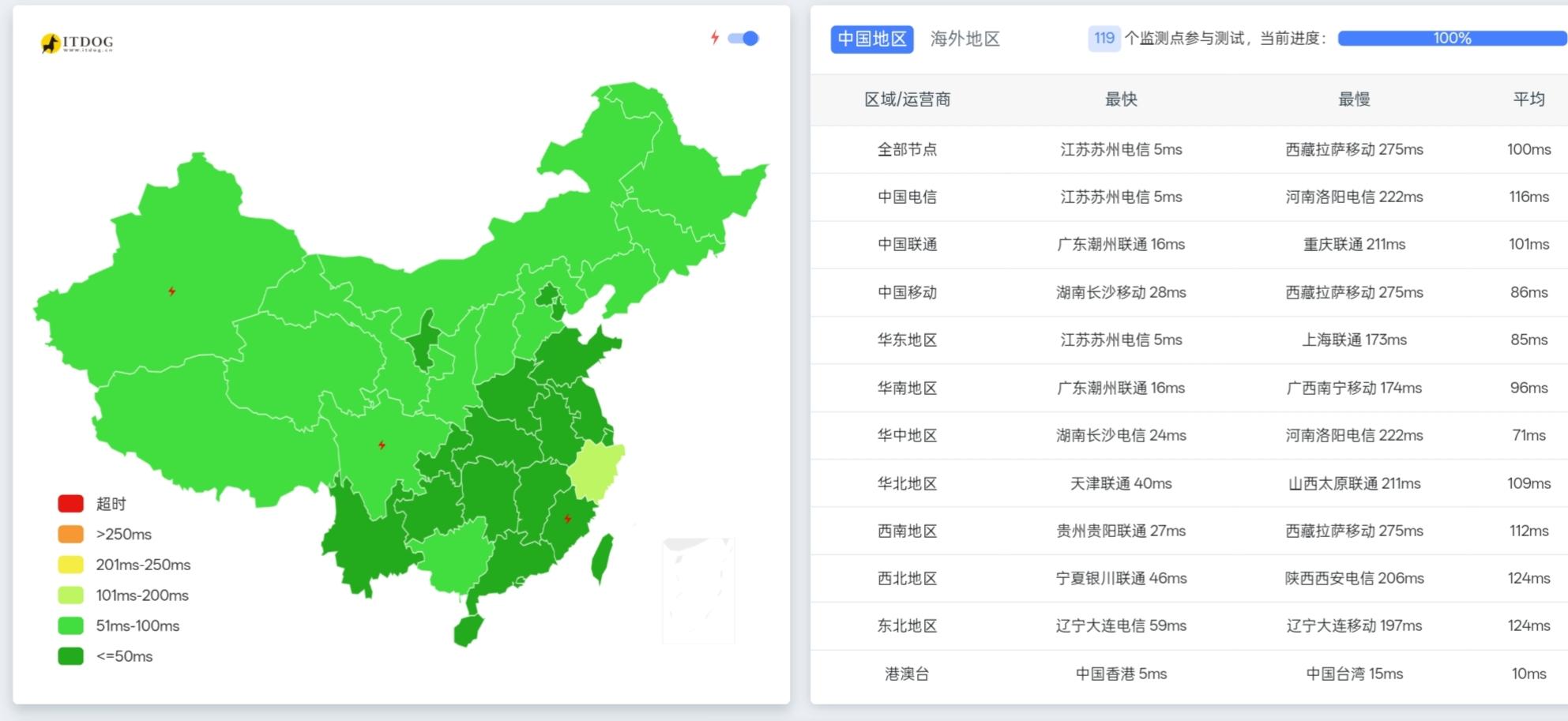 由于昨天恰好是受到攻击,今天更新一下itdog的tcping图